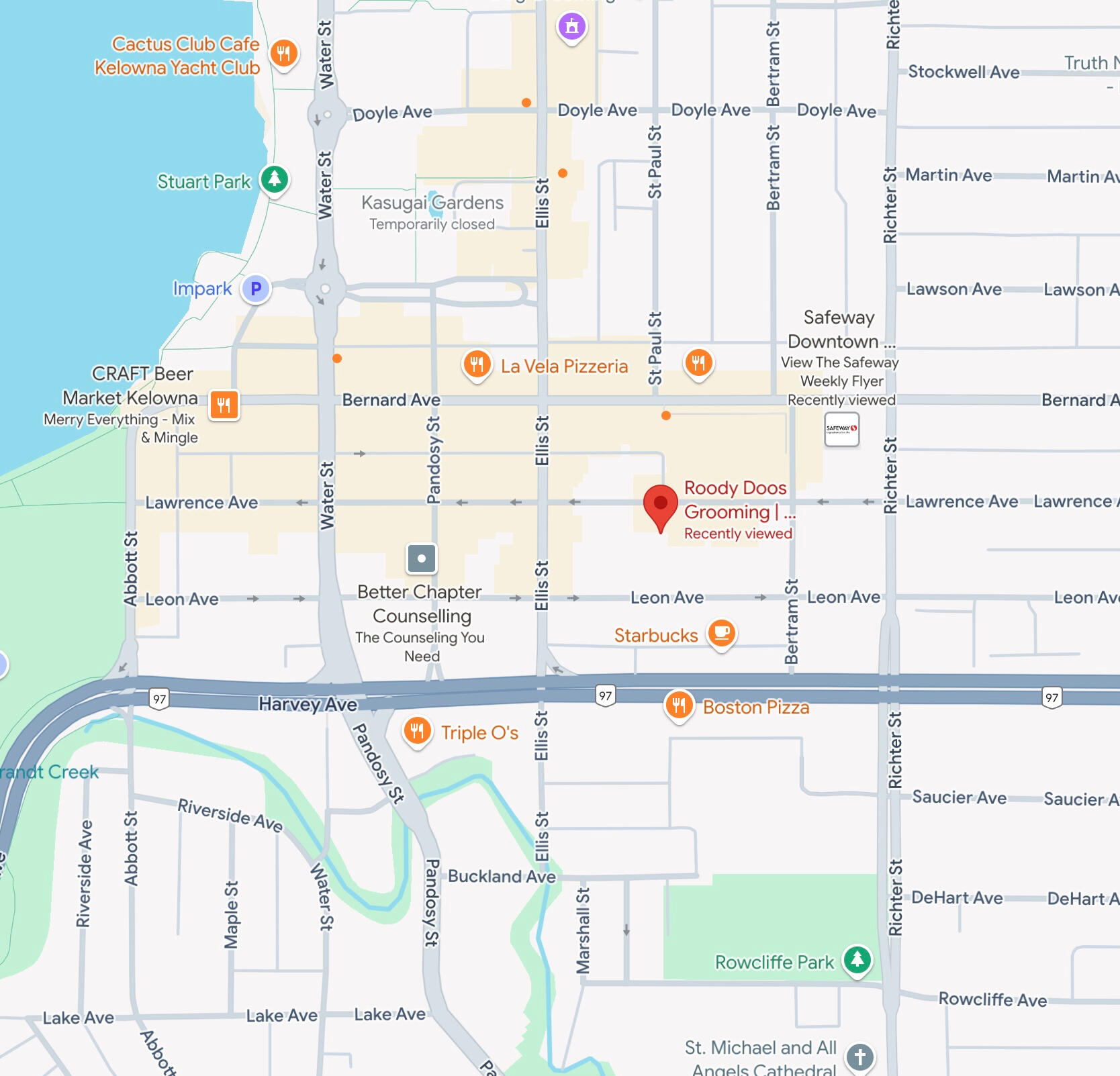 Roody Doos Grooming is conveniently located in Downtown Kelowna, BC.